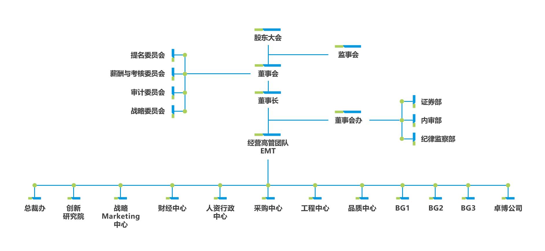 监事会主要职责包括检查公司财务和公司经营状况,对董事、高级管理人员执行职务的行为和董事会运作规范性进行监督。公司实行董事会领导下的总经理制度,作为公司经营管理以及危机管理的最高责任人,对公司生存发展负责。公司业务组织架构逐步调整为基于客户、产品、投资三个维度的组织架构。各相应组织共同为客户创造价值,对公司的财务绩效有效增长、市场竞争力提升和客户满意度负责。