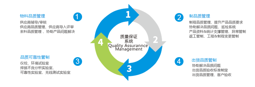 公司致力于建立先进的质量管理体系,通过规划、评估、验证和确认四个阶段规划的质量管控方案,以降低客户的质量风险,同时通过持续改进,培养员工以及零缺陷质量文化,来确保高质量的产品, 为产品满足海外各国家、各行业要求,丰富的产品认证经验包括CE、FCC、BSMI、C-TICK、Kc、CCC、Wi-Fi等。