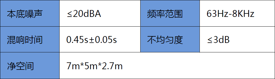 高标准设计要求:消声室严格按照国家相关标准,如GB/T 6882-2016,JJF1147-2006,GB 50800-2012进行设计和建造。超大空间设计,净空间为5.4m*5.4m*2.17m,专业为TWS耳机量身打造。出色的技术指标:经国家计量院计量后,其相关主要技术指标均处于业内领先水平。