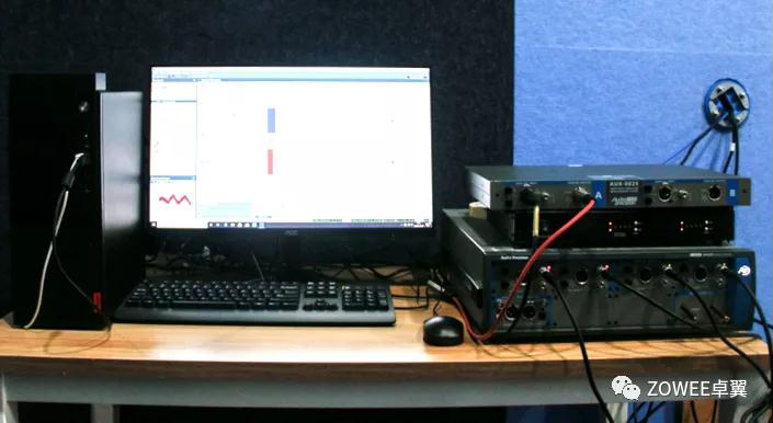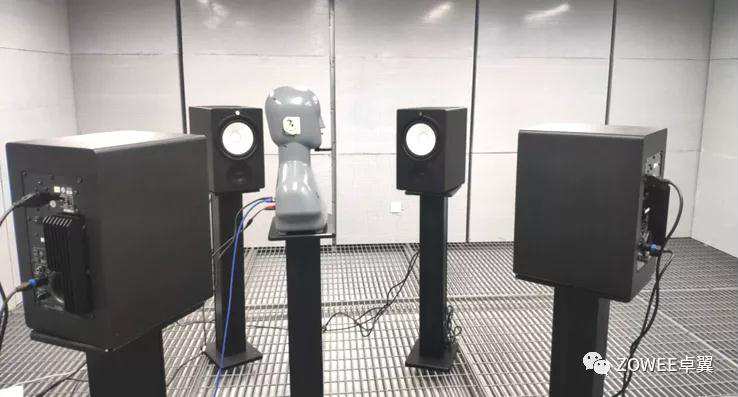 采用YAMAHA HS5有源近场监听音箱11个,YAMAHA SW300低音音箱1个和天龙DENON AVC-X6500H AV功放1个,可以模拟高铁站、汽车站、地铁、商场、校园、运动场地等三十多种场景,为TWS耳机提供一个专业的ENC测试环境,对测试降噪数据更加精准。